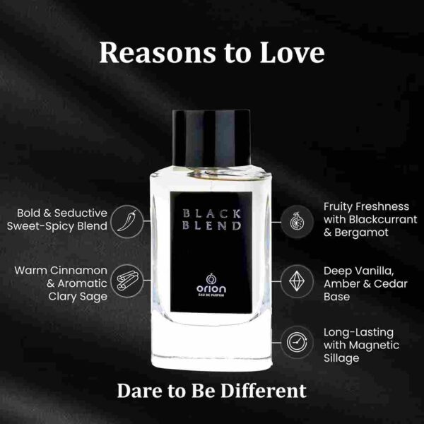 BLACK BLEND by ORION is available in a 3.4 oz / 100 ml spray bottle, Inspired by Ultra Male by Jean Paul Gaultier for men. blends fresh, aromatic, and vanilla notes for a bold and captivating allure.